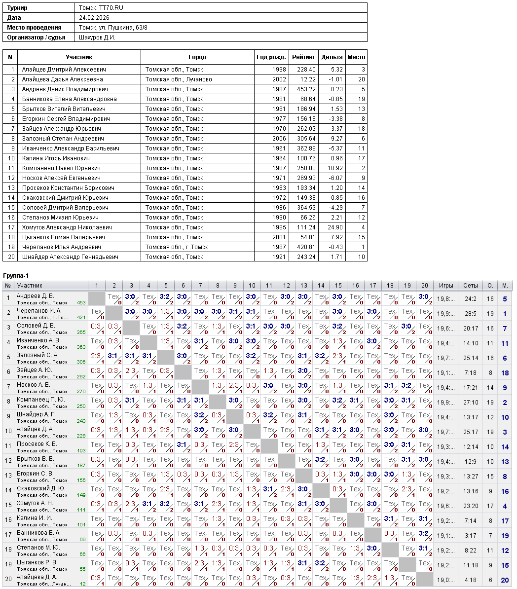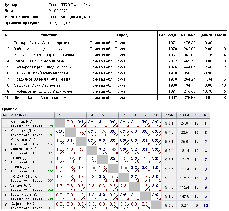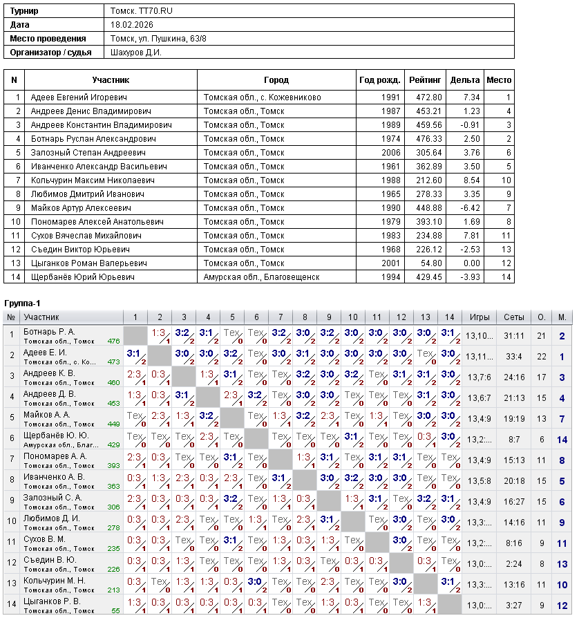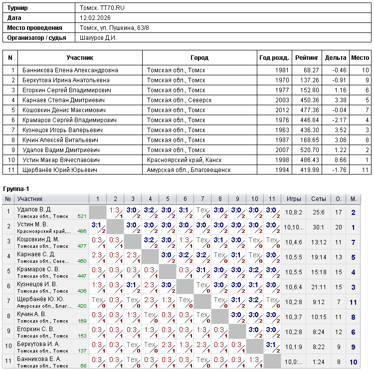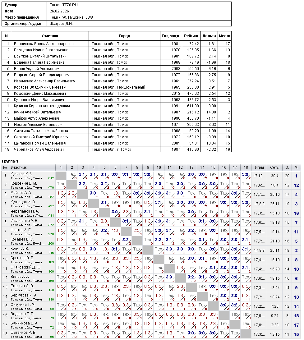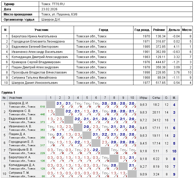 Клуб настольного тенниса в Томске