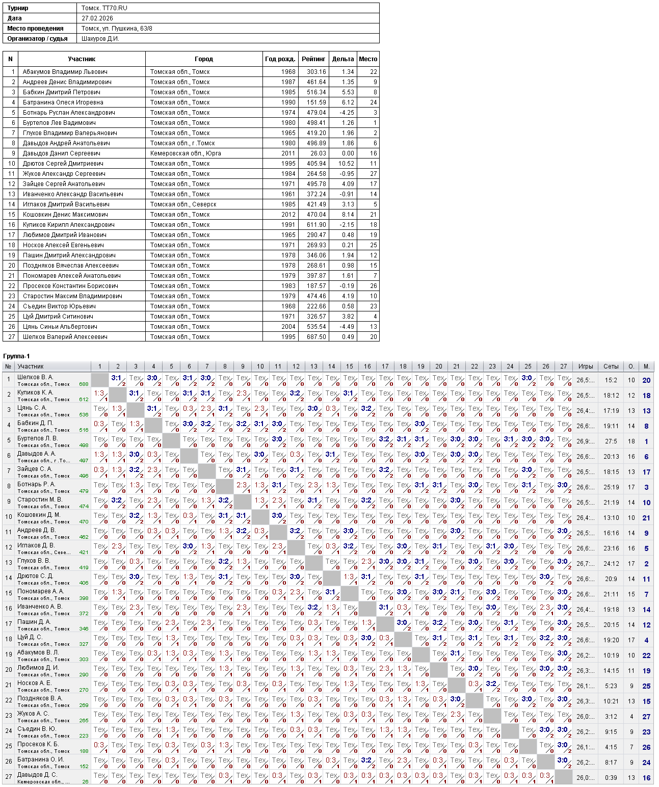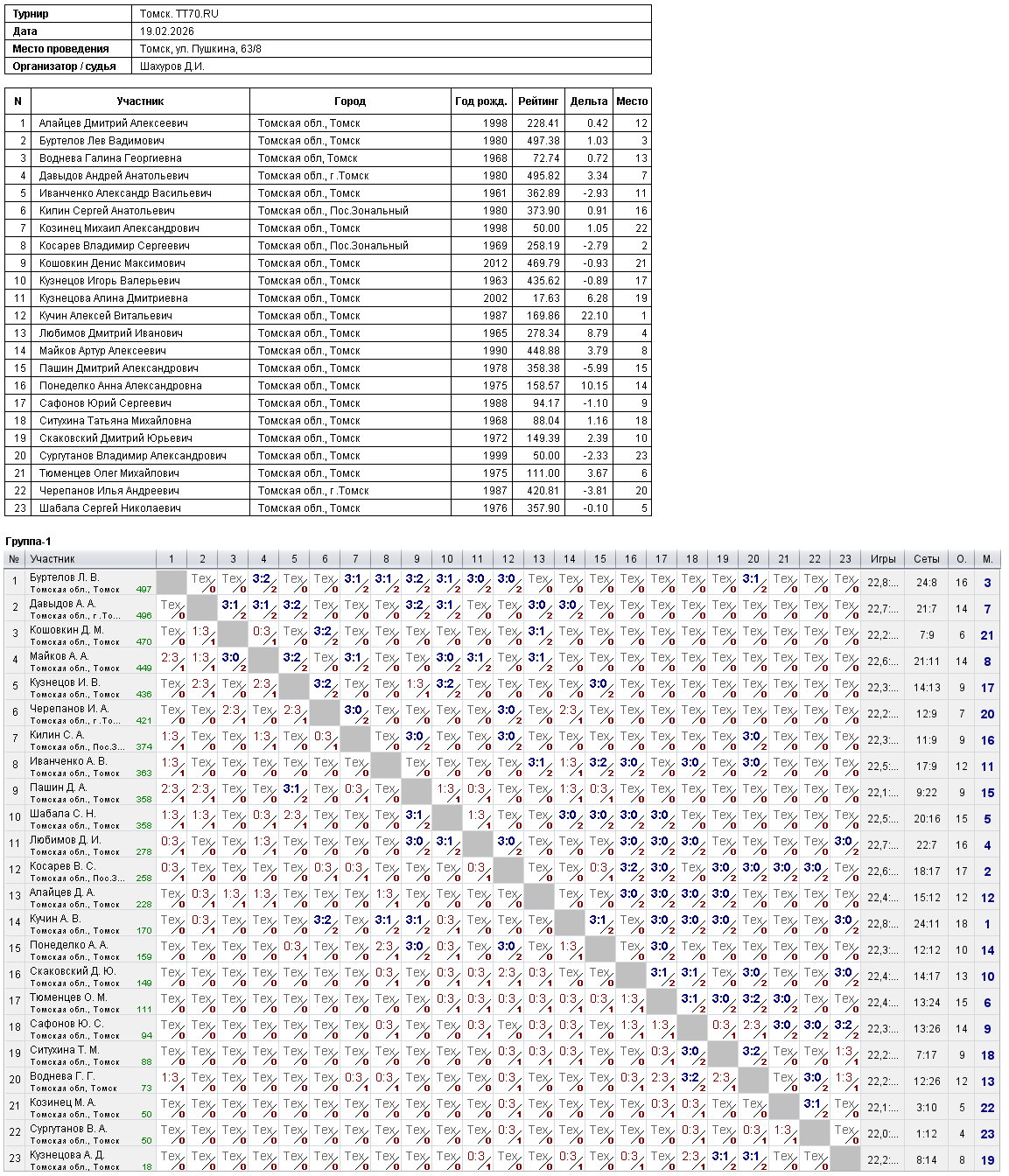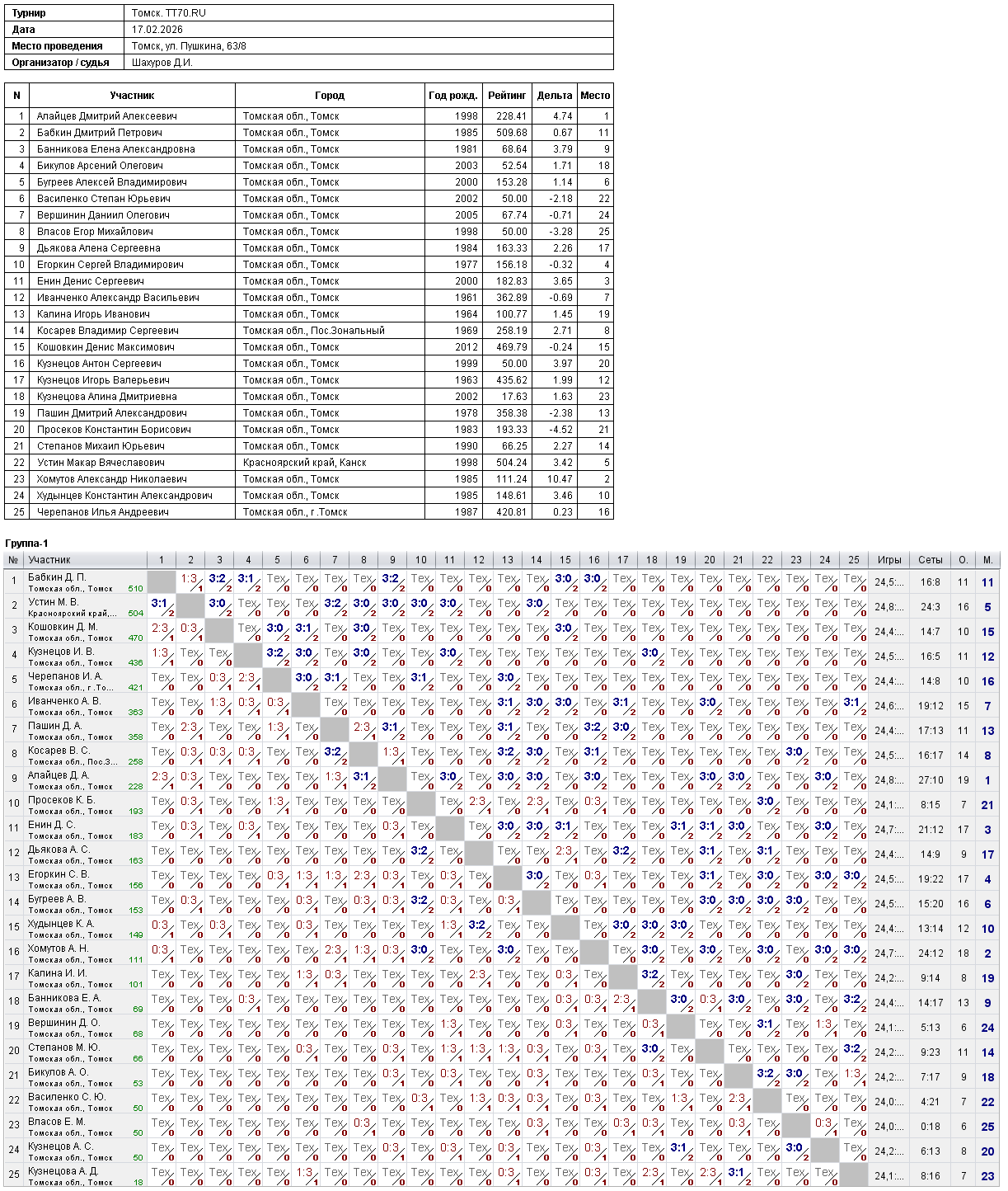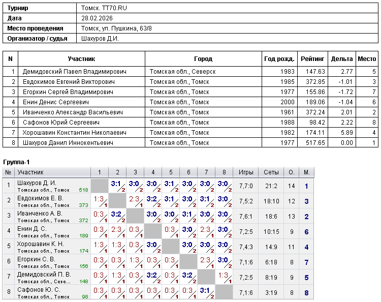 Клуб настольного тенниса в Томске