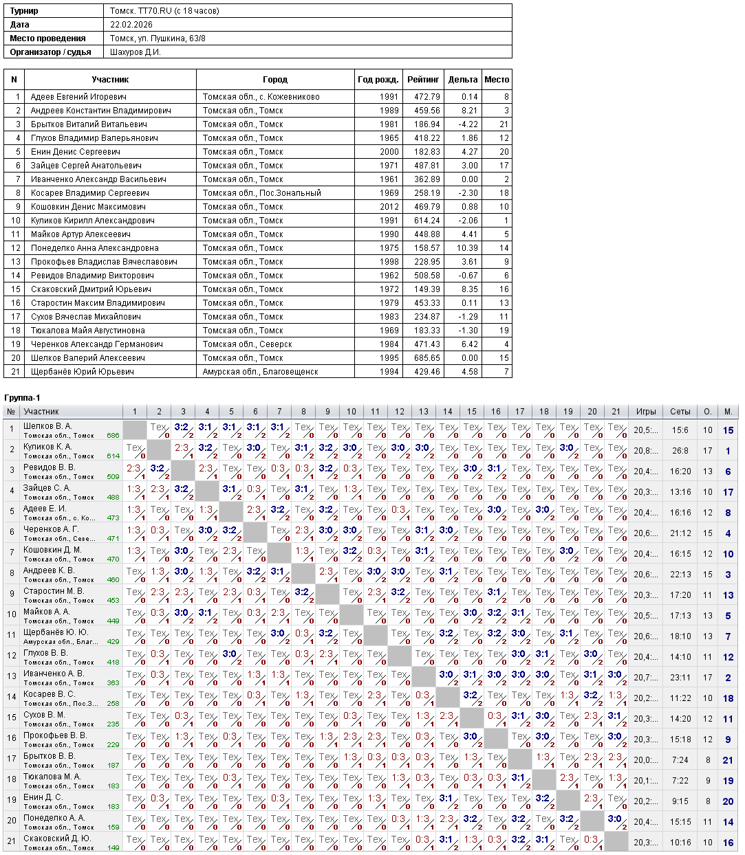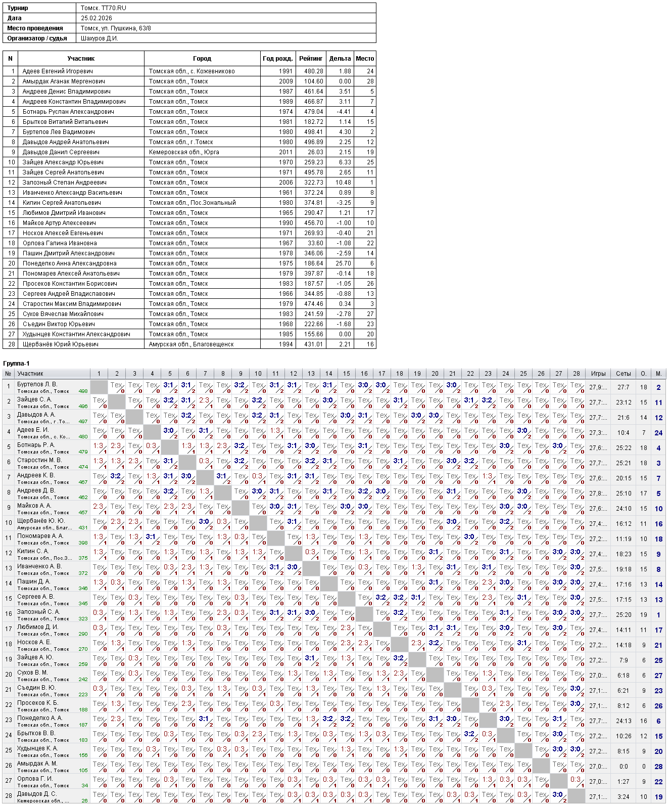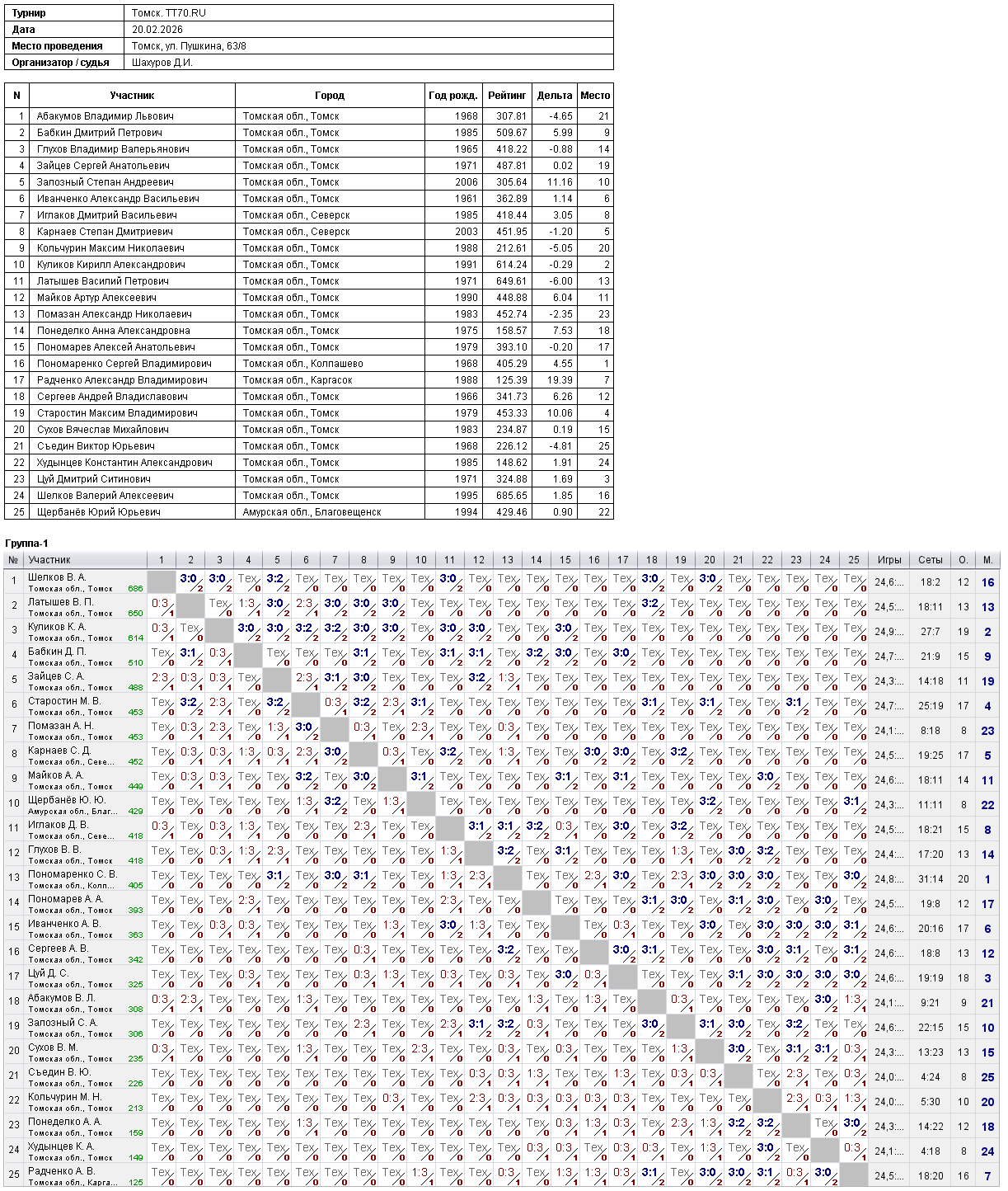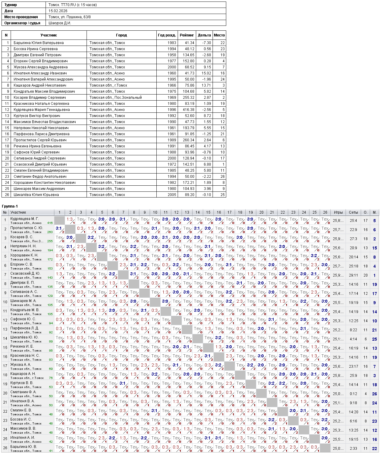 Клуб настольного тенниса в Томске